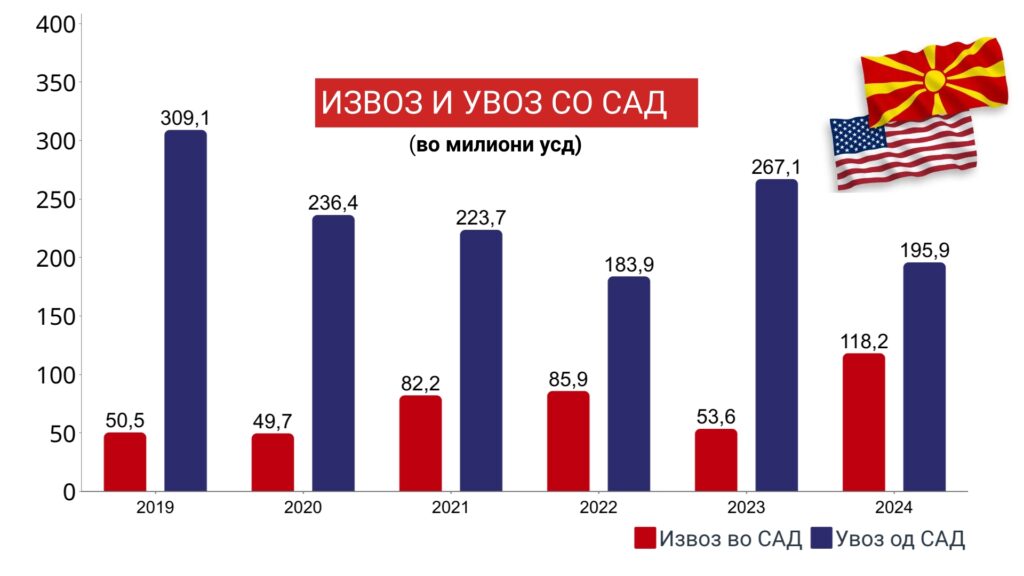Минатата 2024 година од САД сме увезле производи вредни 196 милиони долари.