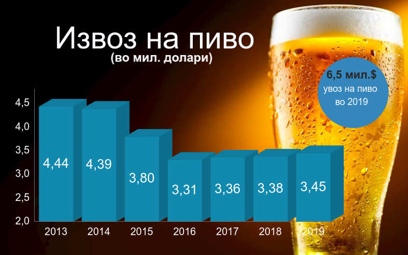 Иако македонските пива имаат добра продажба на домашниот пазар, податоците покажуваат дека увозот на пива од странство се зголемува во последните неколку години. Така статистиката покажува дека лани сме увезле пиво во вредност од над 6,5 милиони долари, што е најголем увоз во последните седум години.
