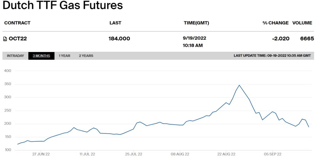 Во меѓувреме, британската влада развива план кој би можел да ги преполови цените на енергијата за многу бизниси, како дел од пакетот за поддршка од 40 милијарди фунти (46 милијарди американски долари) финализиран од премиерката Лиз Трас. Франција планира да го ограничи зголемувањето на цените на енергијата за домаќинствата на 15% од следната година, потег што ќе ја чини владата 16 милијарди евра во 2023 година, според министерот за финансии Бруно Ле Мер.