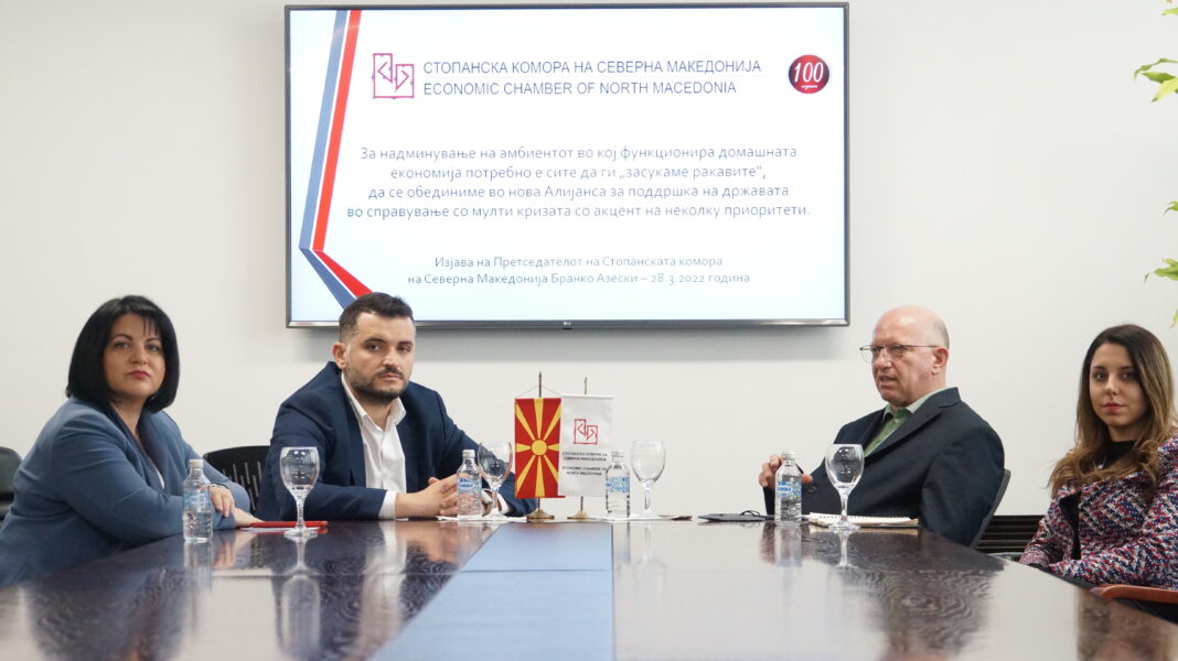 “Цениме дека е потребно да отвориме серија од неколку прес конференции на кои ќе ја искажеме моменталната состојба која владее во реалниот сектор, бидејќи во соработка со 160 компании со кои имаме дневна комуникација добиваме се повеќе алармантни и загрижувачки информации кои се обидуваме да ги обработиме и да ги проследиме до јавниот сектор, и на тој начин да си помогнеме сите”, вели претседателот на Стопанската комора на РС. Македонија, Бранко Азески.