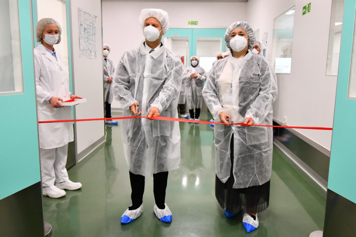 Поради специфичноста на процесите и поради пандемијата, примопредавањето на новите капацитети церомонијално го спроведоа г-ѓа Милкица Глигорова, директор на производствениот сегмент на ПЦ Фармација, и г. Живко Мукаетов, генералeн директор/претседател на Управниот одбор на компанијата, во присуство на членови на високиот менаџмент на „Алкалоид“ АД Скопје.