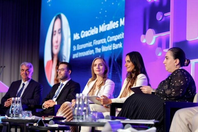 Гувернерката зборуваше на панел-дискусијата на тема „Зошто е важна мобилизацијата на приватниот капитал“, којашто ја отвори главниот економист на Светската банка за Европа и Централна Азија, Ивајло Изворски, со свое излагање. Таа се осврна на доходовниот јаз помеѓу нашата и земјите од регионот со економиите во ЕУ, којшто сѐ уште е длабок, како и на ефектите од мобилизацијата на приватниот капитал за остварување на потребните структурни реформи во економиите, особено зелената трансформација. „Јазот за финансирање на зелените инвестиции е особено голем кај земјите во развој, во нашиот случај се проценува дека е околу 7,7% од БДП. Имајќи предвид дека јавните ресурси се ограничени, особено по скорешните кризи, при зголемена цена на капиталот, потребна е мешавина од повеќе политики за негово надминување. “, посочува Ангеловска-Бежоска.
