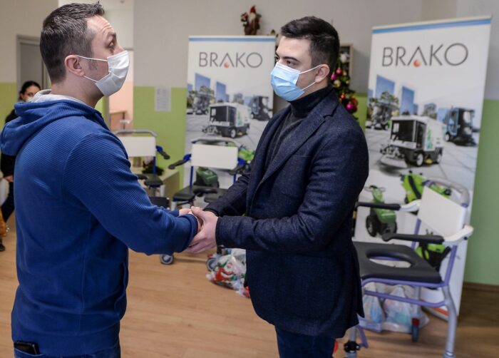 „Би сакал да се заблагодарам на вработените во Дневниот центар за лица со церебрална парализа, што денеска ни дозволија да бидеме нивни гости и да им се заблагодарам на децата кои ни посакаа добредојде. Во миговите кога најмногу се подарува, во пресрет на Новата Година, огромна чест ни е што Центарот ја прифати нашата понуда да донираме медицински помагала и на децата да им поделиме новогодишни подароци. Драго ми е што успеавме да им кажеме дека мислиме на нив, како што всушност тоа го правиме и во текот на целата година, затоа што медицинската производна програма е од самите почетоци на „Брако“ чии производи се позиционирани на светските пазари согласно потребните ИСО стандарди за квалитет. Во име на компанијата „Брако“, им ја честитам Новата Година на сите лица со попречености во развојот, на нивните семејства, на сите Центри што се грижат за овие лица, поттикнувајќи ги во опстојувањето во животот со хендикеп, во живот кој го смени својот нормален тек заради корона-кризата, која што искрено посакувам да остане наше минато“, изјави Огнен Анѓушев, од одделот за набавки во „Брако“.