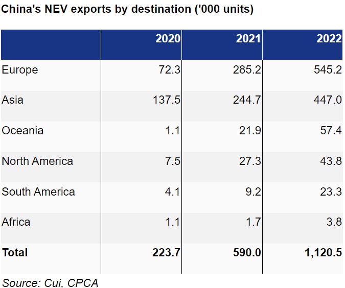 Европа и Азија се два главни извозни пазари за електричните кинески возила.