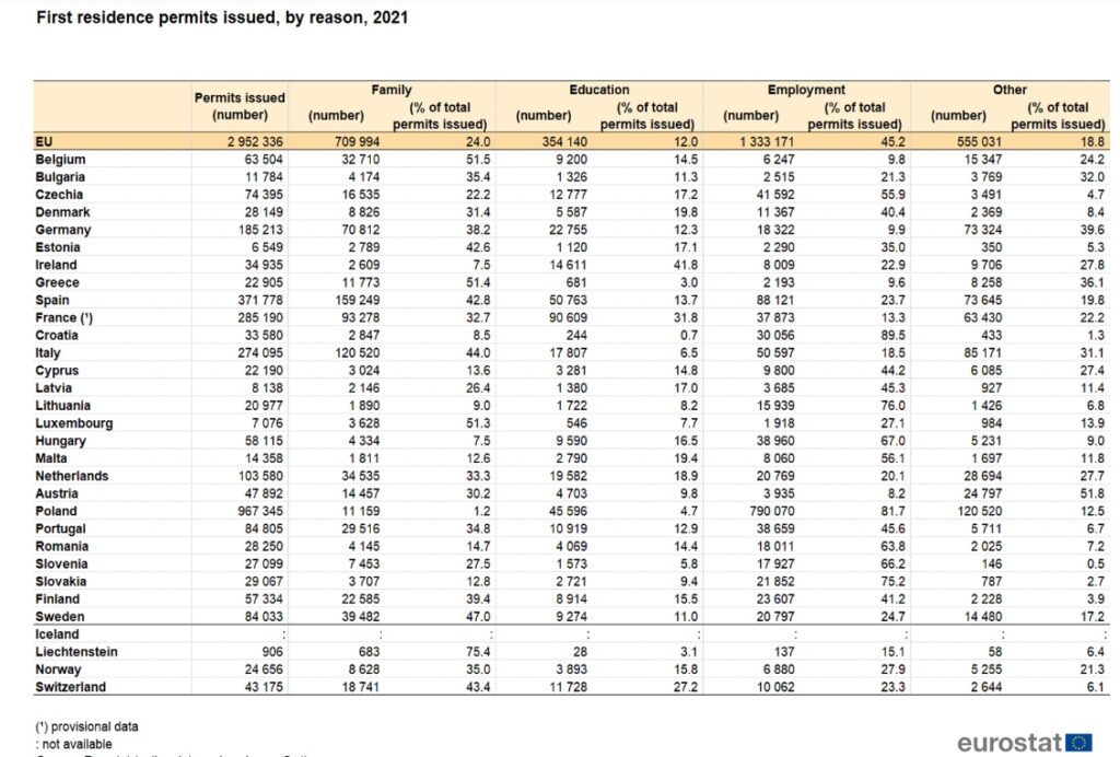 На крајот на 2022 година бројот на издадени дозволи за престој на странци во Полска достигна рекордни 1,66 милиони, надминувајќи за прв пат 1 милион и зголемувајќи се за една третина во споредба со бројот на дозволи издадени на странци во 2021 година, кој изнесуваше околу 970 илјади.