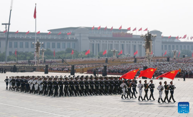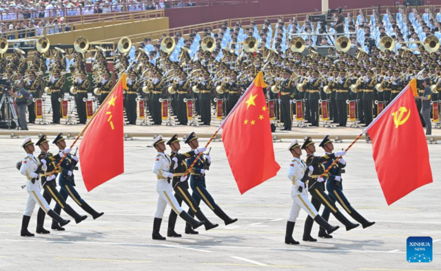 Денес, човештвото се соочува со избор помеѓу мир или војна, дијалог или конфронтација, победа за сите или нулта сума“, изјави Си пред повеќе од 50.000 гледачи на плоштадот Тјенанмен, додавајќи дека кинескиот народ „цврсто стои на вистинската страна од историјата“.