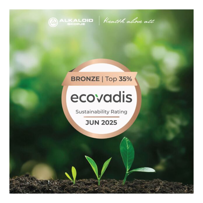 Македонската компанија Алкалоид доби признание за големата посветеноста на одржливоста и усогласувањето со ESG критериумите во своето работење добивајќи бронзен медал EcoVadis, глобално реномираната платформа за проценка на одржливоста.