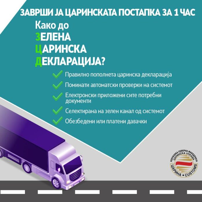 “Ова ќе важи за декларации кои се правилно пополнети, со електронски приложени документи и кои системот ги селектирал како неризични, односно кои не подлежат на дополнителни проверки и контроли, и за кои се платени или обезбедени царинските давачки“, објаснуваат од Царинската управа.