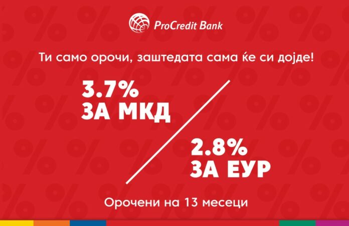 Новата понуда за Орочен депозит е достапна за сите граѓани и аплицирањето е целосно онлајн на веб страницата на ПроКредит Банка https://www.pcb.mk/aplikacija-za-otvoranje-orocen-depozit.nspx