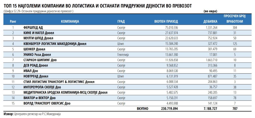 Најголеми и најуспешни компании во логистичкиот бизнис во Македонија