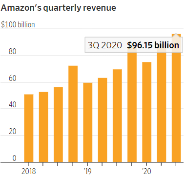 Amazon објави дека од почетокот на јули до крајот на септември, неговата продажба се зголемила за 37% во споредба со истиот период минатата година, на 96,2 милијарди долари, а профитот на компанијата се зголемил за дури 197 %, на 6,3 милијарди долари.