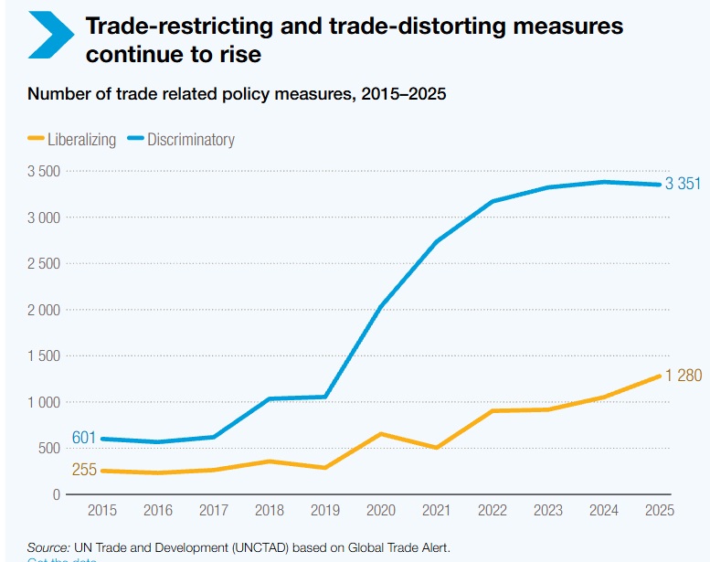 Од 2020 година, воведени се околу 18.000 нови дискриминаторски трговски мерки. Техничките прописи сега влијаат на околу две третини од глобалната трговија, зголемувајќи ги трошоците за усогласување, особено за помалите извозници.