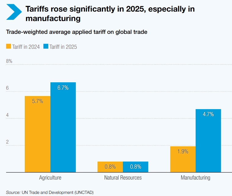 Глобалните царини се зголемија во 2025 година, главно поттикнати од мерките воведени од САД, при што производството е најпогодено. Се очекува владите да продолжат да ги користат царините во 2026 година за да ги остварат индустриските и стратешките цели.