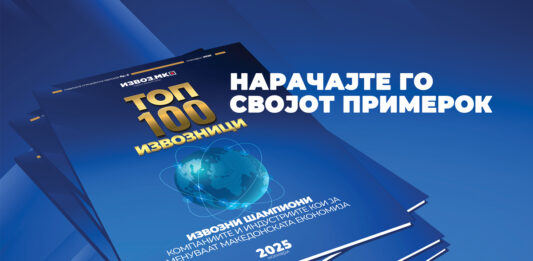 ТОП 100 ИЗВОЗНИЦИ 2025:Извозни шампиони: Компаниите кои ја менуват македонската економија Со задоволство ве информираме дека излезе новата специјална годишна едиција „ТОП 100 ИЗВОЗНИЦИ 2025“– единствената публикација која ги рангира најголемите и најуспешни извозни компании во Северна Македонија. Едицијата ТОП 100 ИЗВОЗНИЦИ, која ја издава специјализираниот портал ИзвозМК (www.izvoz.mk), е посветена на најголемите извозни компании … Продолжи со читање Излезе новата ексклузивна едиција “ТОП 100 ИЗВОЗНИЦИ 2025”