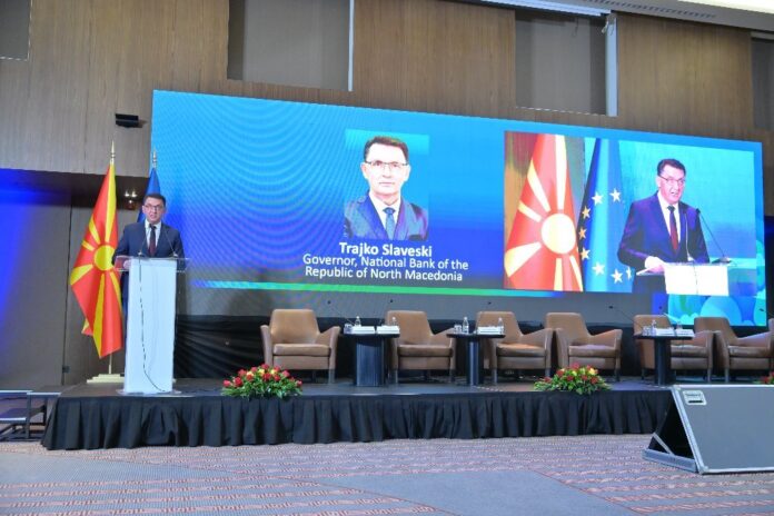 Гувернерот Славески на конференција во Тирана: Водиме претпазлива монетарна политика и подготвени сме да им одговориме на сите потенцијални ризици